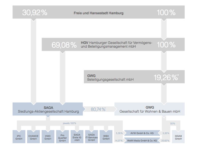 Eigentümerin der SAGA ist die Stadt Hamburg, allerdings auf etwas verschachtelte Weise: