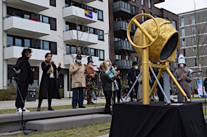 Satirische Aktion zum Housing Action Day 2022: „Goldener Betonmischer“ für bestes Investitionsklima – Investor*innen bedanken sich für Hamburgs Politik mit einem Denkmal